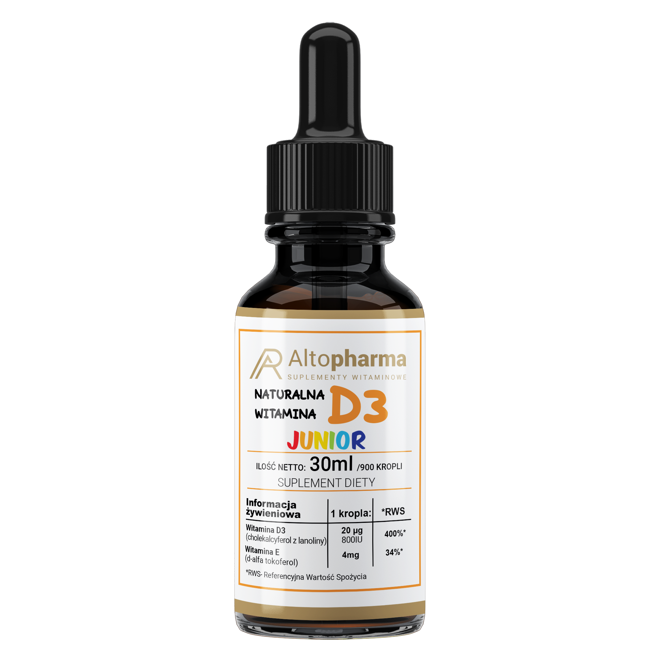 Alto pharma Witamina D3 JUNIOR 800IU DLA DZIECI LEPSZA ODPORNOŚĆ 30 ml / 900 kropli