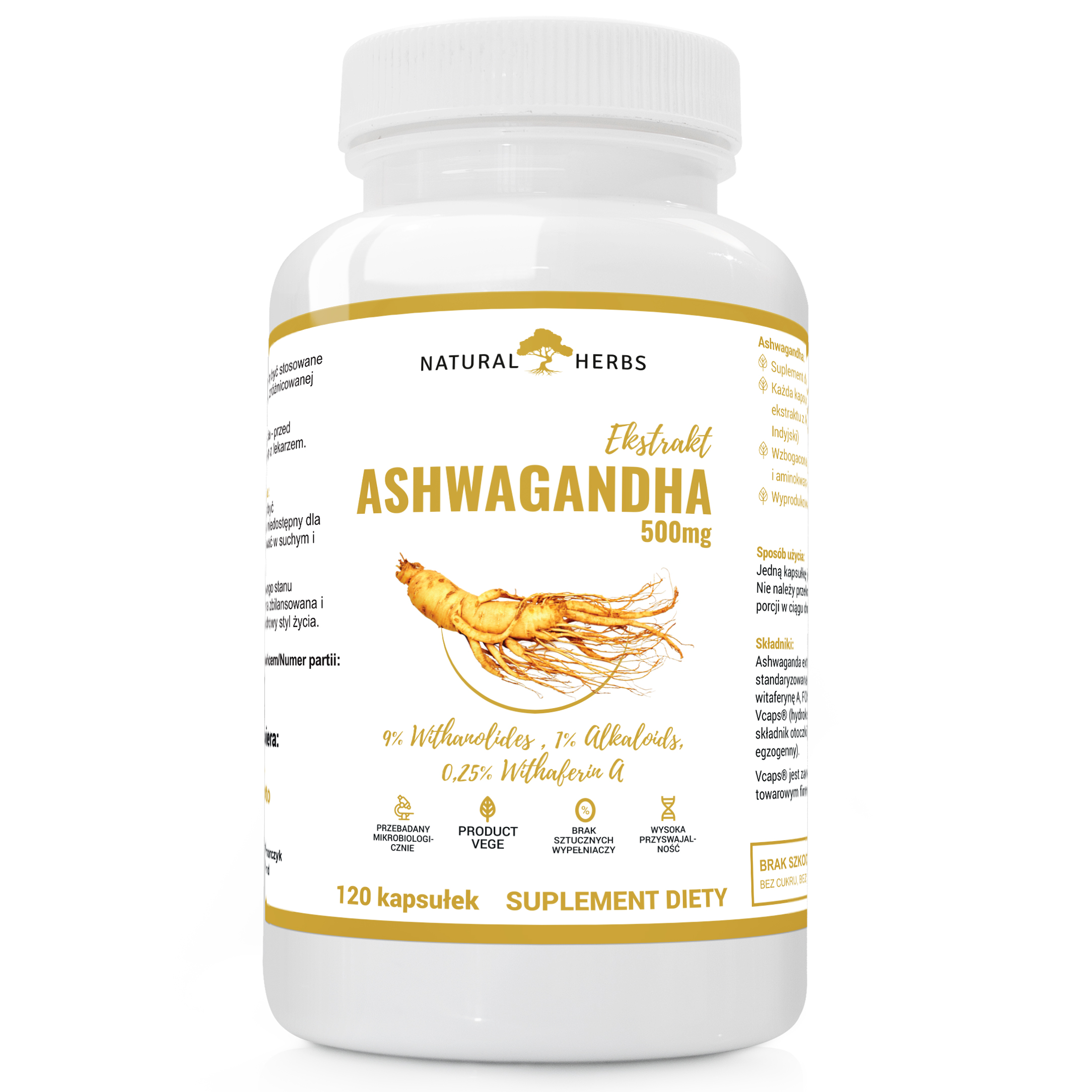 Powody, dla których warto zdecydować się na ASHWAGANDHA WITHANIA SOMNIFERA EXTRACT 500mg 9% + L-LEUCYNA + PREBIOTYK marki NATURAL HERBS®: