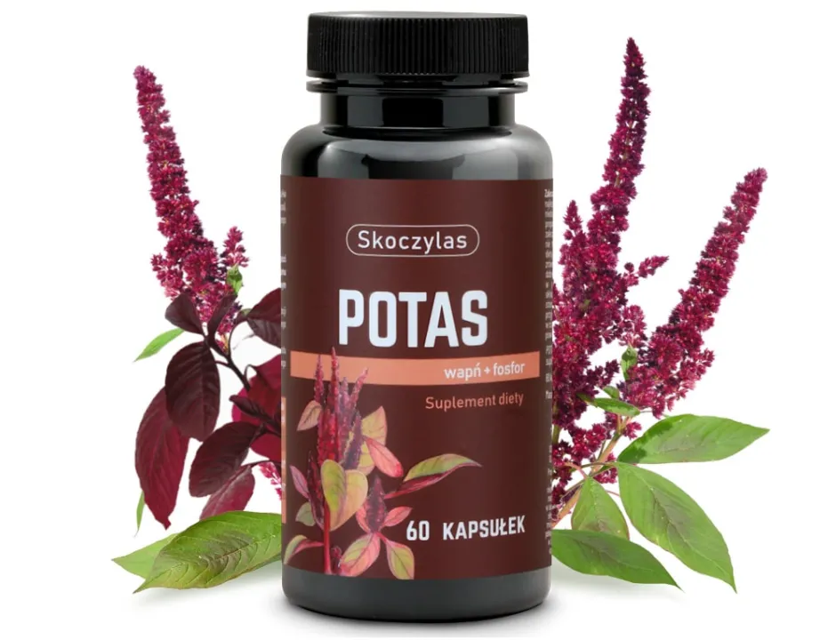 Glicerofosforan wapnia, chlorek potasu, kapsułka (substancja glazurująca: hydroksypropylometyloceluloza), z nasion amarantusa, szarłatu wiechowatego (Amaranthus cruentus L).